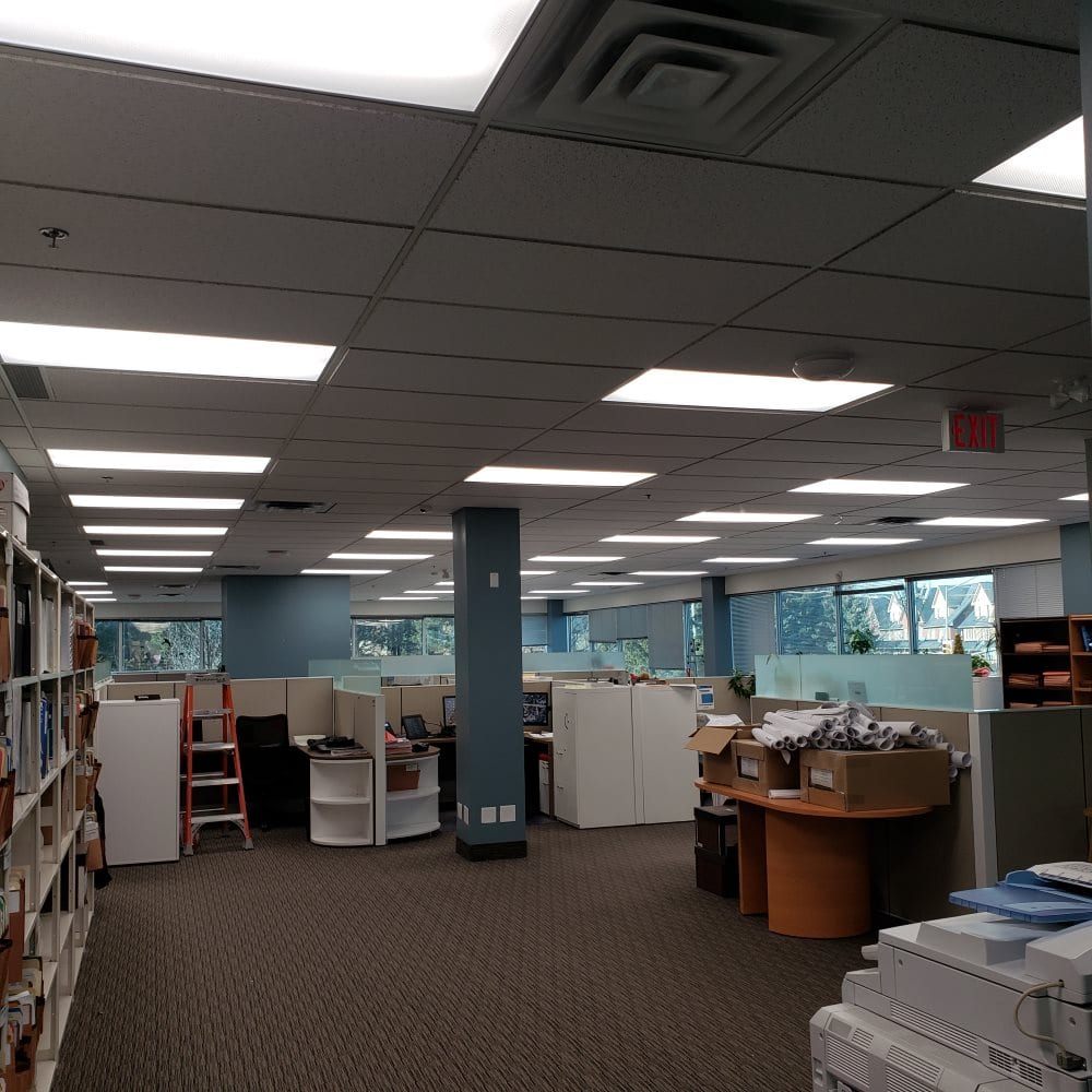 Fluorescent bulbs converted to LEDs throught offices